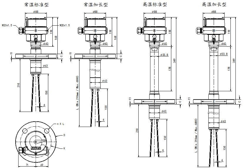 3.插入深度:在采购音叉料位开关时,要根据罐体壁厚或者立管的高度进行选择,以避免实际安装中因音叉长度过短而无法接触到物料,影响正常测量的情况出现。
